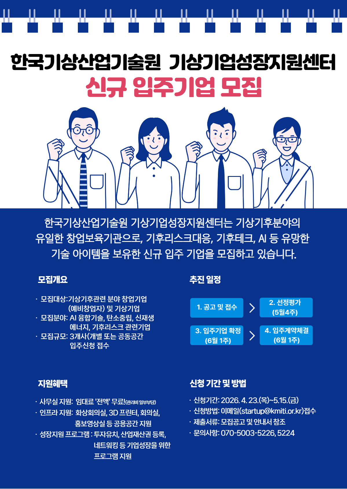 현재 페이지 공유2026년도 제2차 기상기업성장지원센터 신규 입주기업 모집 공고